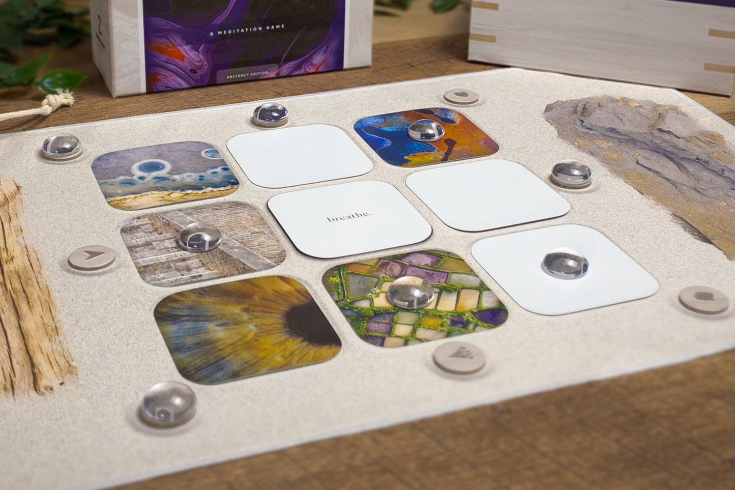 Nevermind The Distraction is a short, relaxing abstract card game for one player inspired by the principles of mindful meditation. The simple, easy-to-grasp gameplay rules and tranquil, minimalist table presence aspire to introduce real-world meditation techniques in a fun, accessible way.